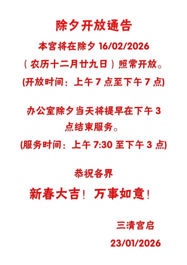 除夕开放通告