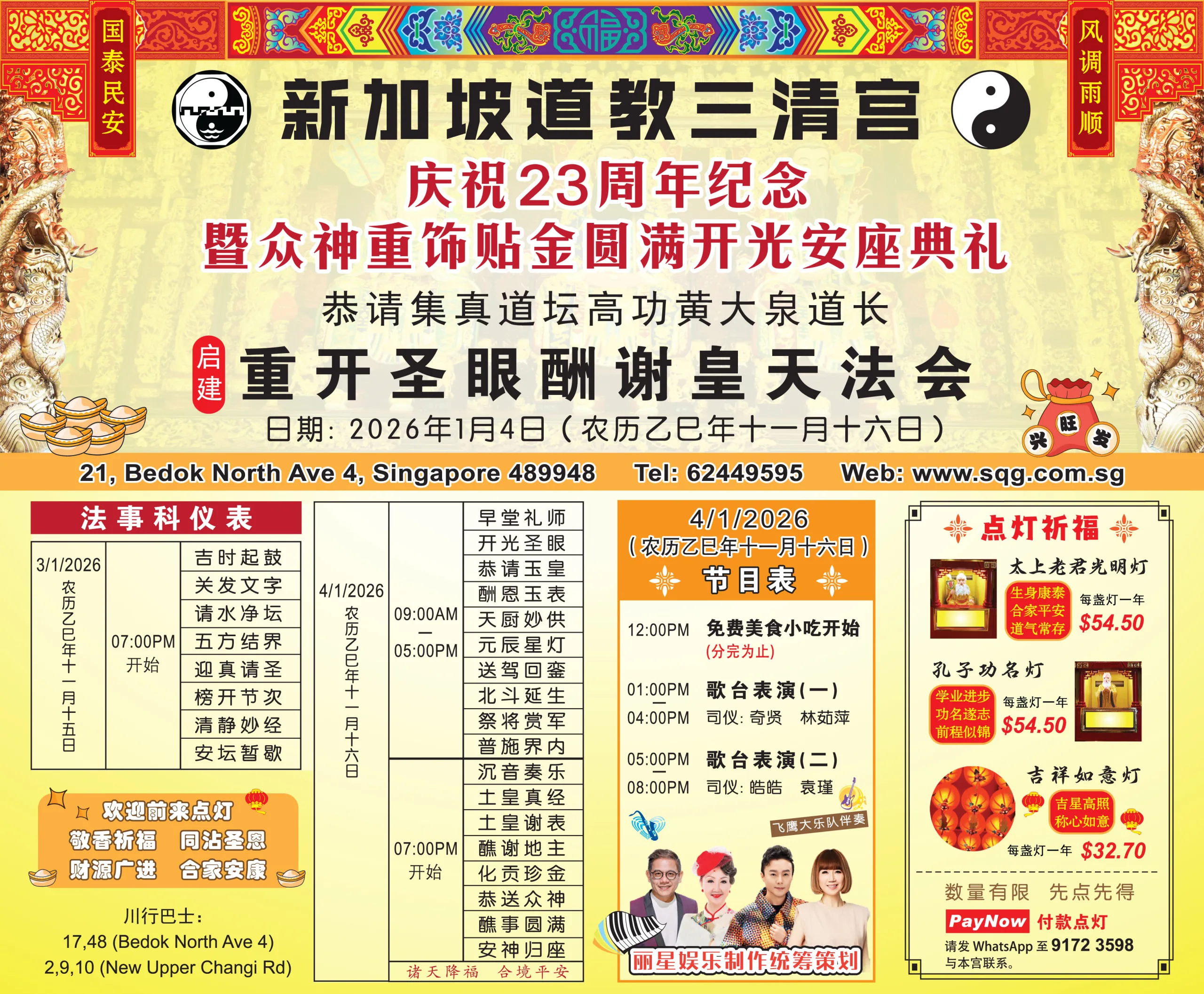 San Qing Gong, the first orthodox taoist temple in Singapore, was founded in March 2003.