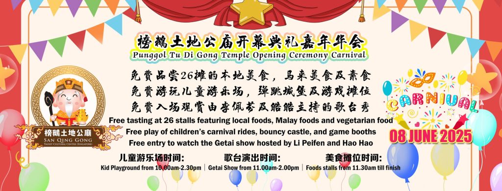On 8 June 2025, the Punggol Tu Di Gong Temple, which has been preparing for many years, will be celebrating the Grand Opening Ceremony of the new temple and the Punggol North Carnival to celebrates Singapore’s 60th Year of Independence. For this purpose, the temple has specially prepared the Three-Day Ceremony [AnLong Xie Tu] and specially invited the Zhonghe Weiyuan Temple, Zhonghe, Taiwan, to preside over the ceremony. The ritual group will also present a [Rice Dragon] made of 300 kilograms of rice to the Singapore devotees.